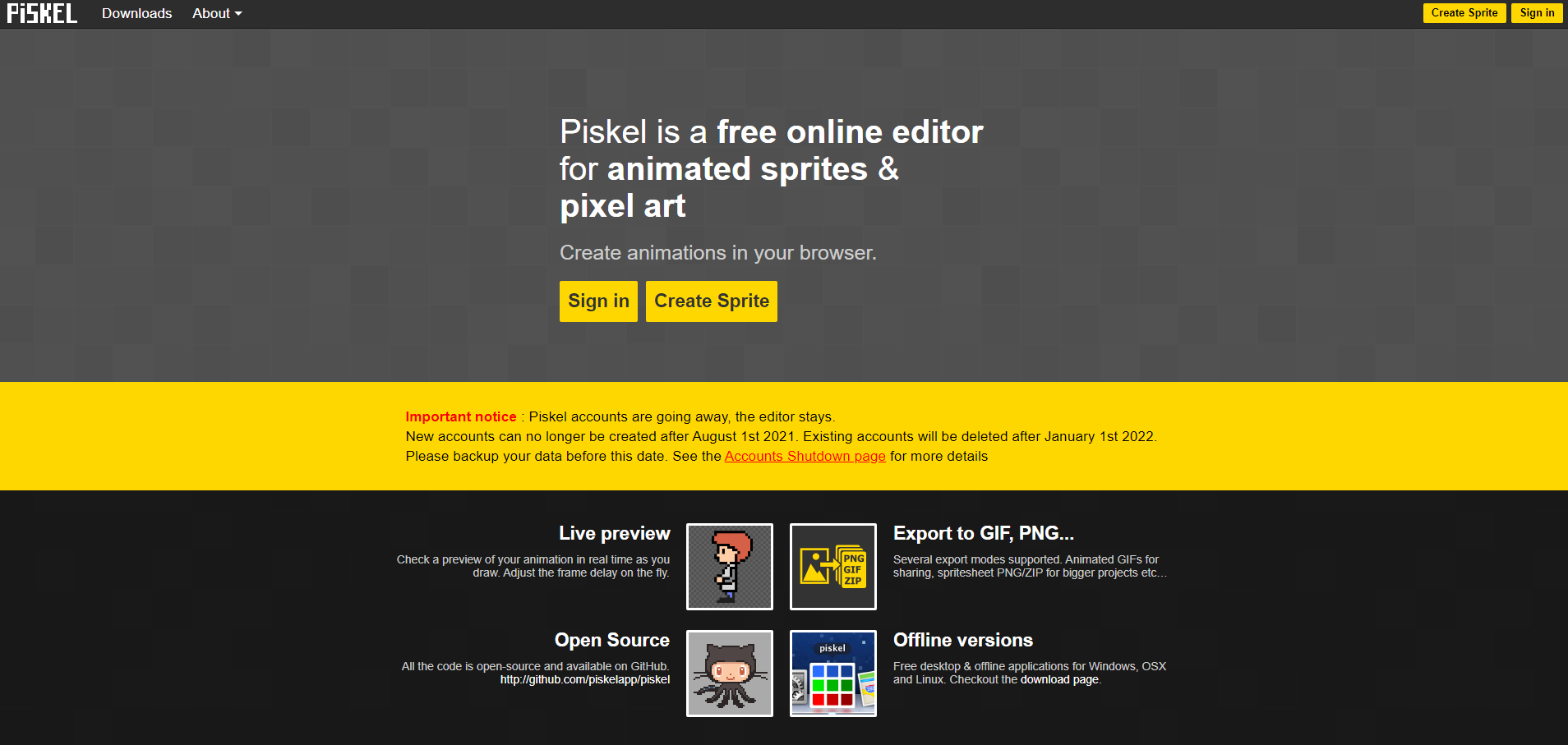 가장 최신버전은 https://github.com/piskelapp/piskel 에서 v0.15.0 다운로드 가능